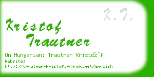 Welcome to KRISTOF TRAUTNER name analyzer. Attention - this page is analising the Kristof Trautner name, not the person named KRISTOF TRAUTNER!